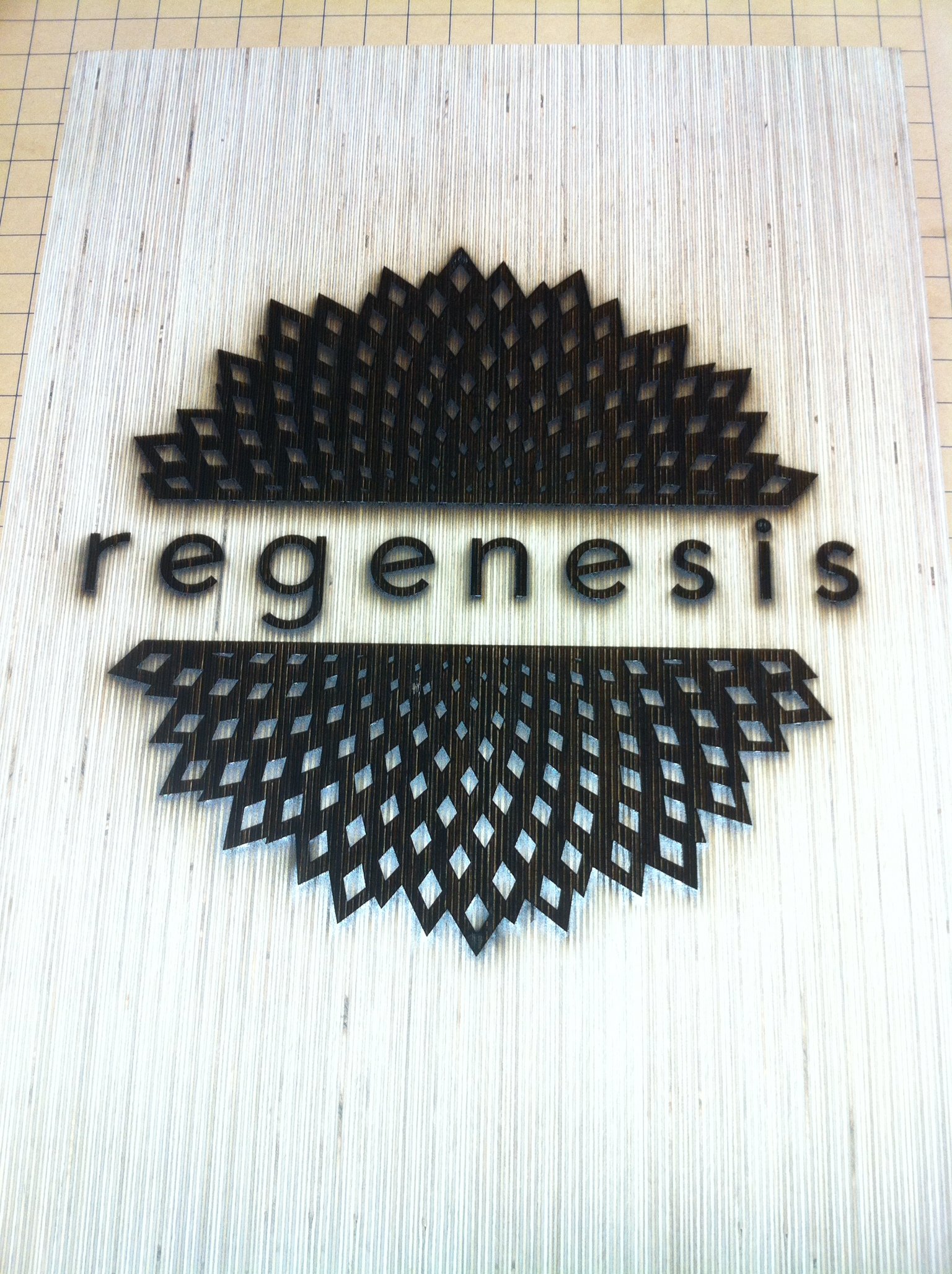 It all begins with an idea. Maybe you want to launch a business. Maybe you want to rebrand your business. Regenesis was just that. They had an idea and needed a sign which conveyed professionalism. This water jet cut steel is partially recessed into the laminated wood backing. The fit was precise. We were able to achieve this from collaboration with the water jet company and the carpenter.